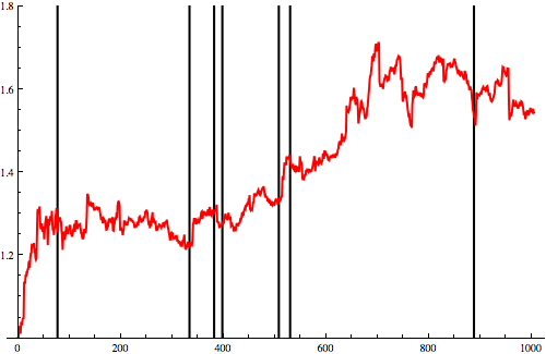 Damn! At this point I’m 99% certain this mini-project has confirmed the null hypothesis and I’m getting a little too dejected to continue. Of course what might be happening is that just before a product launch or large event, companies closely monitor their wiki pages as they prepare for the ensuing PR campaign. This means that vandalism is noticed and fixed quickly, the vandals respond, getting involved in an edit war with company employees - increasing the wikipedia edits, and revealing the warming up of the PR machine! I’ll see if I can scour the news to find what did happen at IBM to push the share price so high so quickly - back in a minute.