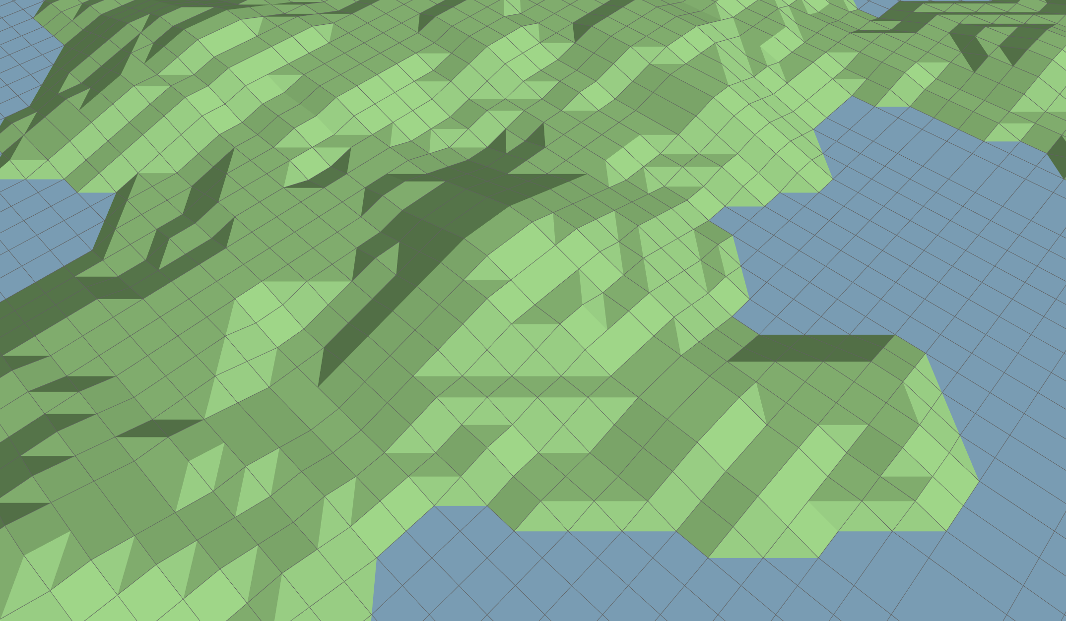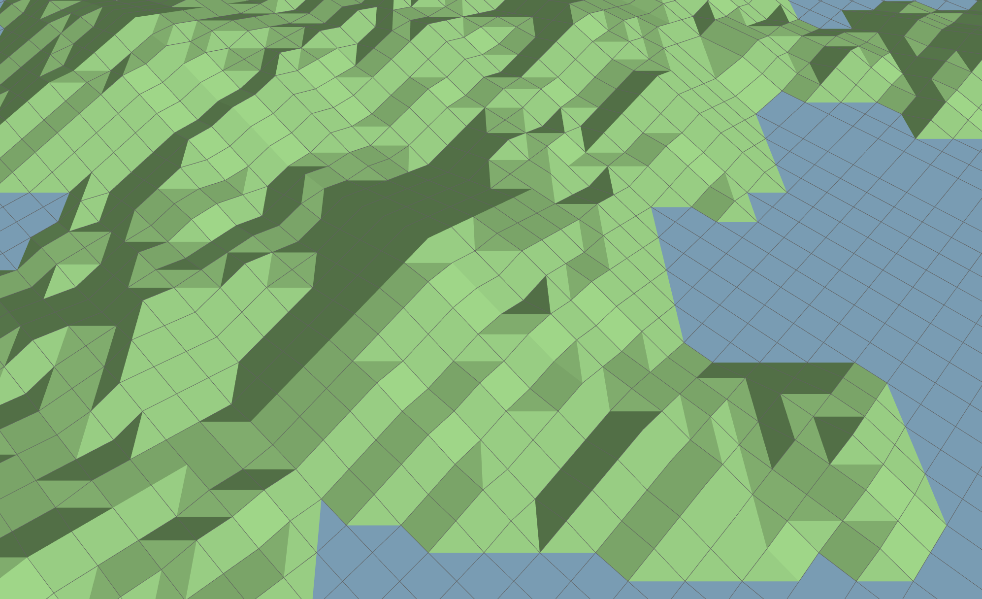 The computer game I played the most growing up was almost certainly Chris Sawyer’s iconic transport network building game Transport Tycoon. As well as being a fun, creative game, it had a basic 2.5D isometric graphics style depicting a unique, highly-constrained landscape. In this blog post I’ll talk about my findings trying to recreate “Transport Tycoon”-like terrain in 3D using WebGL.