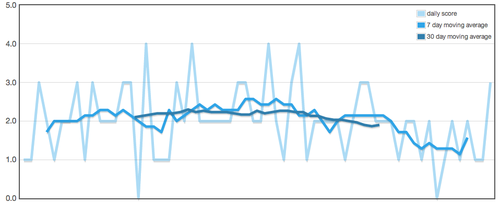 Inspiration for DayScore comes from a number of sources. Probably the biggest is Beeminder which I’m a big fan of and which is far more featureful (you can even pledge money as an incentive). However Beeminder seems more geared to achieving specific goals (eg weight-loss) than keeping consistant routines although there is some overlap.